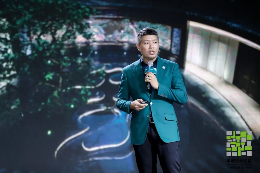GVL怡境国际景观集团设计总院副院长常毅恒,作为羊城设计联盟副会长兼秘书长单位代表出席了联展和专题论坛。他从羊盟的“内外”主题出发,以《景观之外,探索生活的本源》为题发表演讲,介绍了怡境“以人为本,赋能生活”的设计之道。